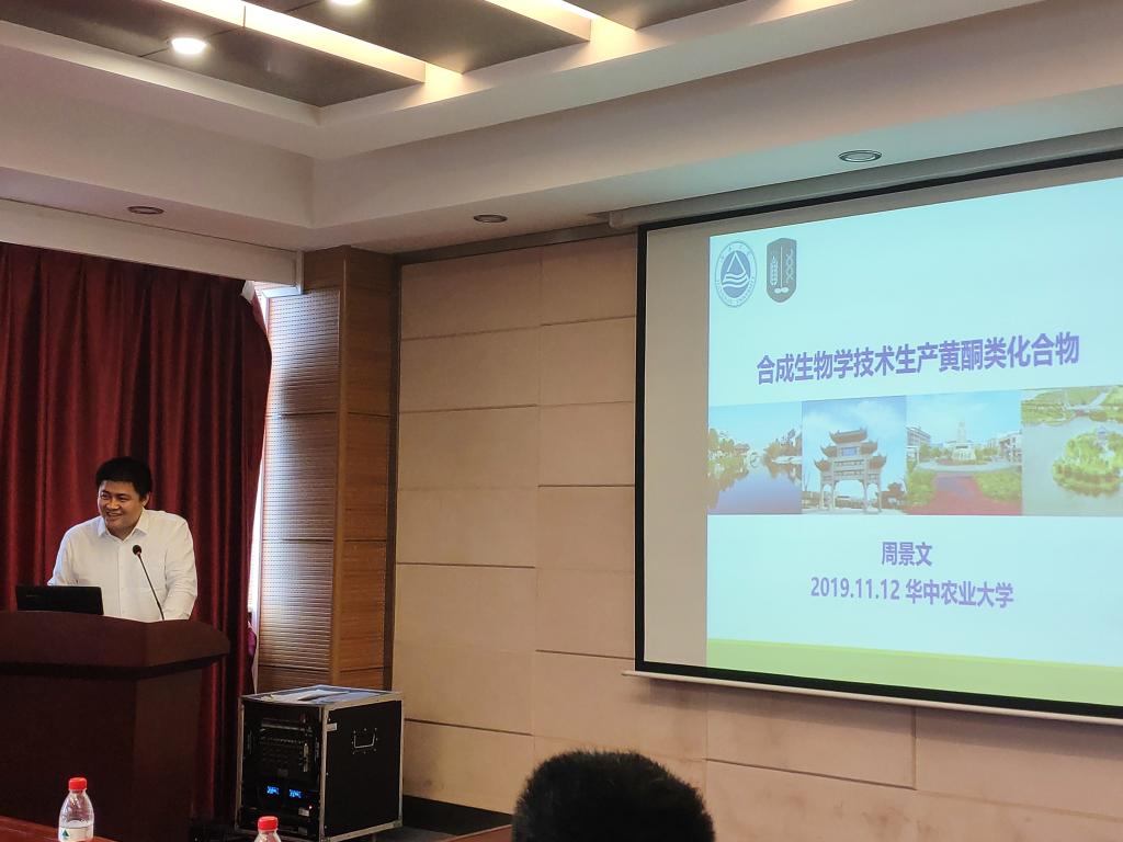 教授周景文做客我校食科院教授名师学术报告会,进行了一场名为“生物合成技术生产黄酮类化合物”的精彩报告,吸引了众多师生前来聆听。