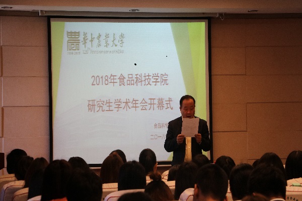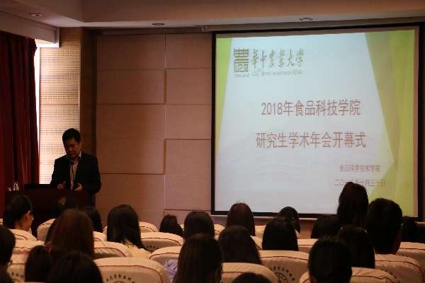 研究生学术年会开幕式暨特邀专家报告会在食科楼504报告厅举行,开幕式由马美湖教授主持,校党委研工部副部长涂俊才老师出席开幕式并致辞。随后,江南大学金征宇教授作为特邀专家围绕“我国食品工业发展现状、趋势与技术要求”主题作了精彩报告,吸引众多师生前来聆听。