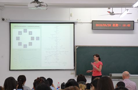 Barbora Branska做了主题为“丁醇的发酵生产:从过去到现在的问题”的演讲。在报告中,Barbora Branska分别从丁醇介绍、丁醇工业生产的历史、发酵的主要特点、利用木质纤维素生物质生产丁醇、流式细胞仪在丁醇生产者分析中的应用 - 溶剂性梭菌五个方面进行讲解。报告结束后,教授们还与参会师生针对留学相关事宜及报告中的几个问题进行了讨论。