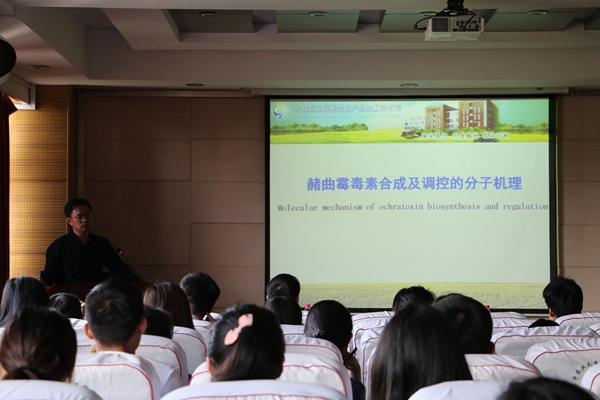 教授名师学术报告会,进行了题为“食品和饲料中真菌毒素的防控和脱毒”的精彩报告。
