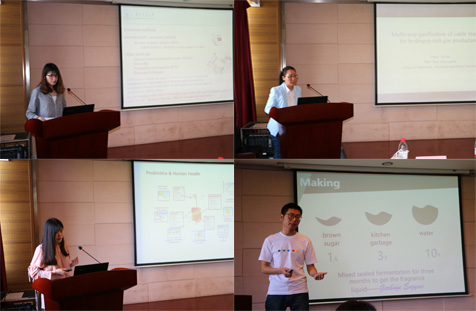 的付垚讲解了一项“利用厨余垃圾的环保酵素智能生产装备”,此装备采用自动控制原理配比环保酵素的原料质量并混合发酵、自动排气、自动记时,能够实现部分餐厨废弃的处理与回收利用。最后,食科院的张子程同学进行了主题为“紫薯花色苷有效黄嘌呤氧化酶抑制剂成分锁定及体外作用机制研究”的学术汇报,她流利的英语、精彩的演讲、大气的台风,赢得观众们的频频掌声,将本次学术会议推向了高潮。