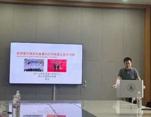 董诺教授围绕眼科与视觉健康作了精彩的学术报告。报告中,他系统阐述了眼表与角膜的损伤修复机制,指出 “眼表营养失衡”“氧化应激加剧” 是导致眼表功能退化的关键因素之一,并分享了厦门眼科中心在 “泪液替代治疗”“眼表抗炎制剂” 研发中的最新进展。