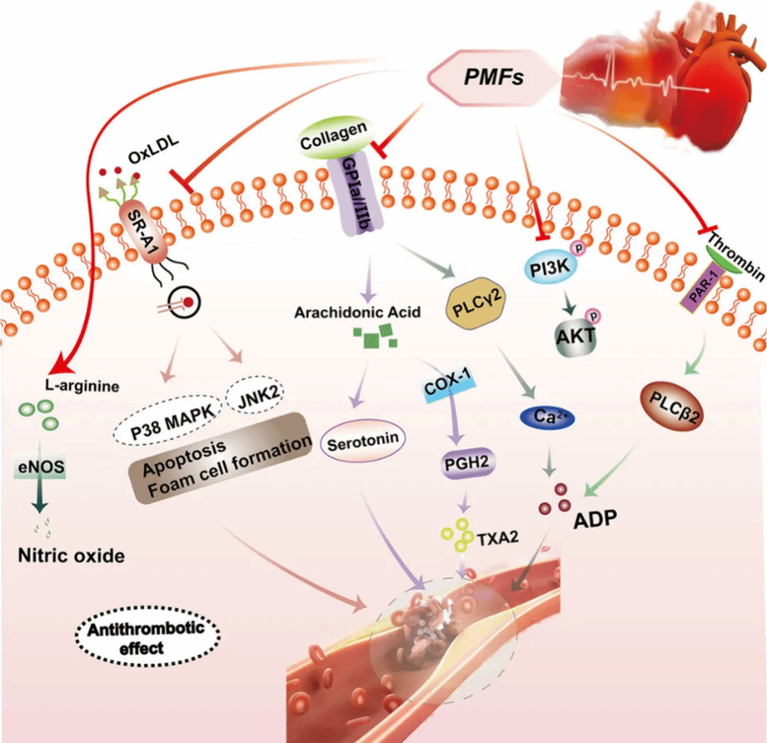 Figure 4. Potential molecular mechanisms of metabolic syndrome regulatory effects of PMFs by lowering lipid effect and modulating gut homeostasis.