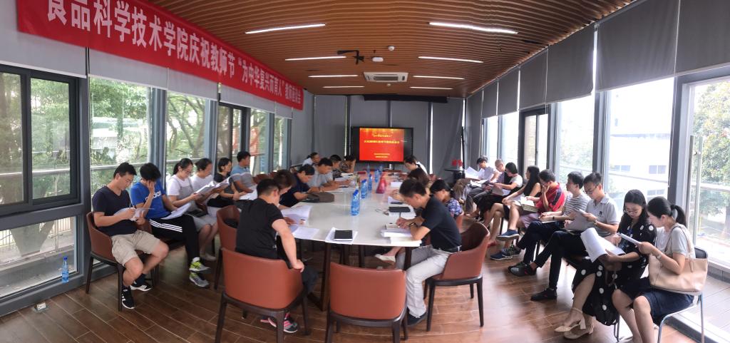 在第34个教师节来临之际,9月6日下午,食科院以“为中华复兴而育人”主题召开庆祝教师节座谈会,学校教学督导员马敬中,杨仁海、向异之、张柱红等院党政领导,何慧、郭爱玲等教指委成员,雷速篮球