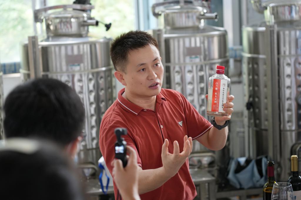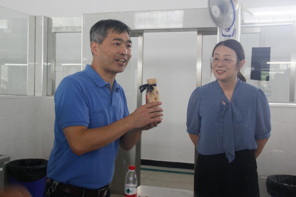耕土耕心,酿酒酿人。葡萄酒是如何制作的,背后的酒文化又是如何?在小型果酒发酵装置前,李二虎老师向同学们讲解着葡萄酒的发酵制作技术,涉及原料破碎、发酵、冷藏、过滤、罐装等一系列工艺,现场同学看、闻、尝后纷纷与老师交流探讨,了解与之相关的葡萄酒文化。