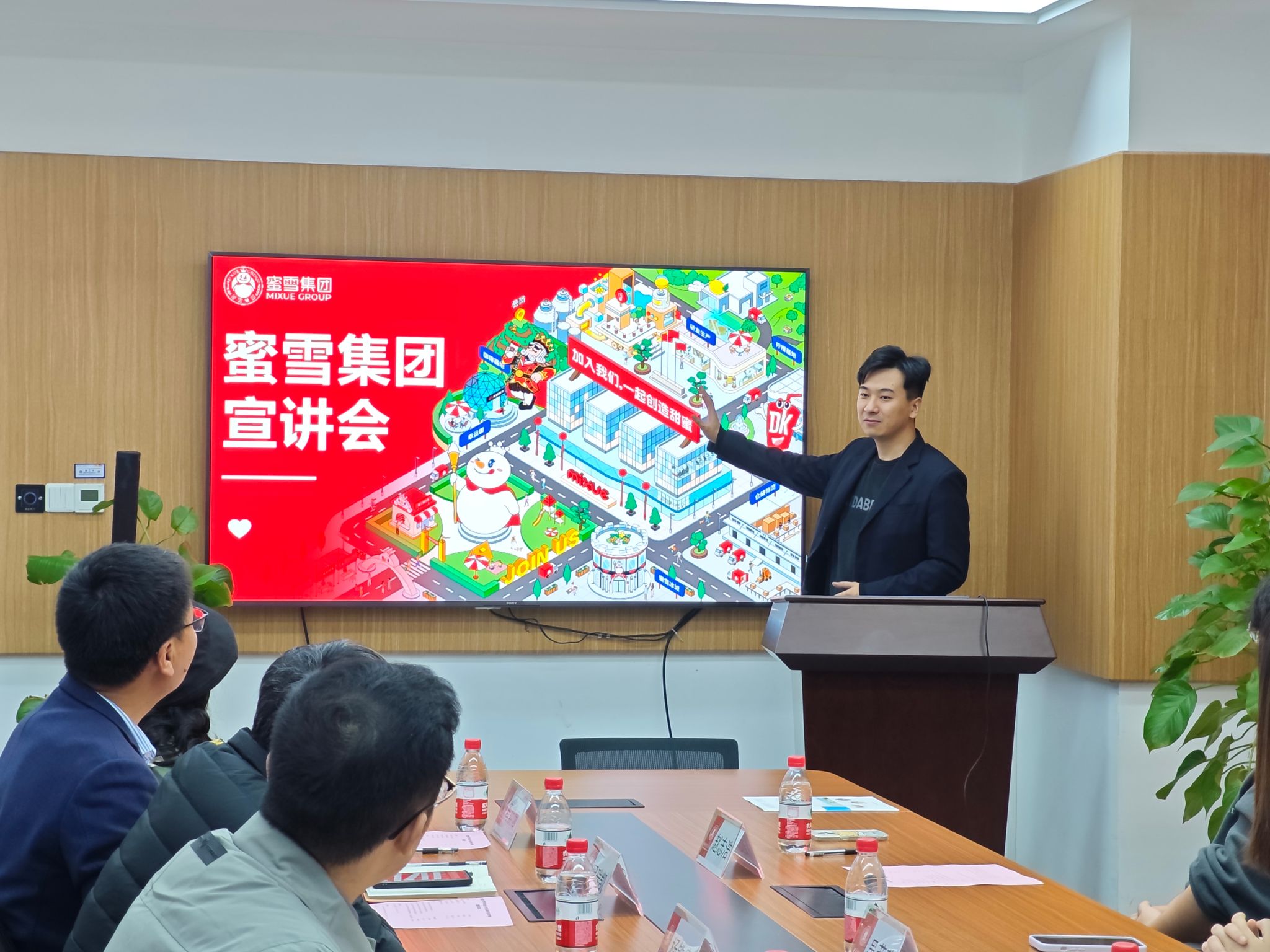 蜜雪集团校招组负责人陈冠龙介绍了蜜雪集团的创办历史、雷速篮球、社会责任、发展前景等内容。陈冠龙表示,蜜雪集团始终遵循“真人真心真产品,不走捷径不骗人”的核心价值观,为广大消费者奉上高质平价的美味。同时,蜜雪集团及下属企业也一直积极响应国家号召,在全国范围内积极开展校企就业合作。