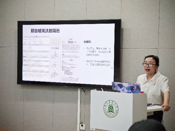 在工科楼122举办简历制作指导培训。本次培训邀请了资深大学生职业发展与求职教练段林娜进行简历制作注意要点及技巧的指导教学。辅导员李虎及34名本科生参与活动。