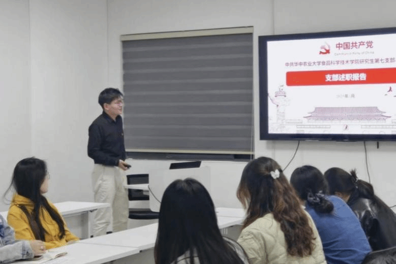 会议开始,由支部书记苑祥昊同志代表支部进行工作述职并查摆问题。他运用一系列详实的数据和实例,生动地展示了过去一年支部在多个方面取得的显著成就:2024年,本支部在发展率、主题党日活动、参观学习实践、校级党建工作荣誉、联合党建活动、创新工作方法以及全院活动参与度等方面均取得优异成果,在全院处于领先地位。然而,在取得成绩的同时,也存在一些需要改进的地方,如活动形式的创新力度有待加强,虽然已经取得了一定的成果,但仍然需要探索更多新颖、有效的活动形式,以提高党员的参与度和活动的实际效果等。针对此次会议当中提到的问题,苑祥昊同志也提出了相应的改进措施,以推动支部工作不断向前发展。