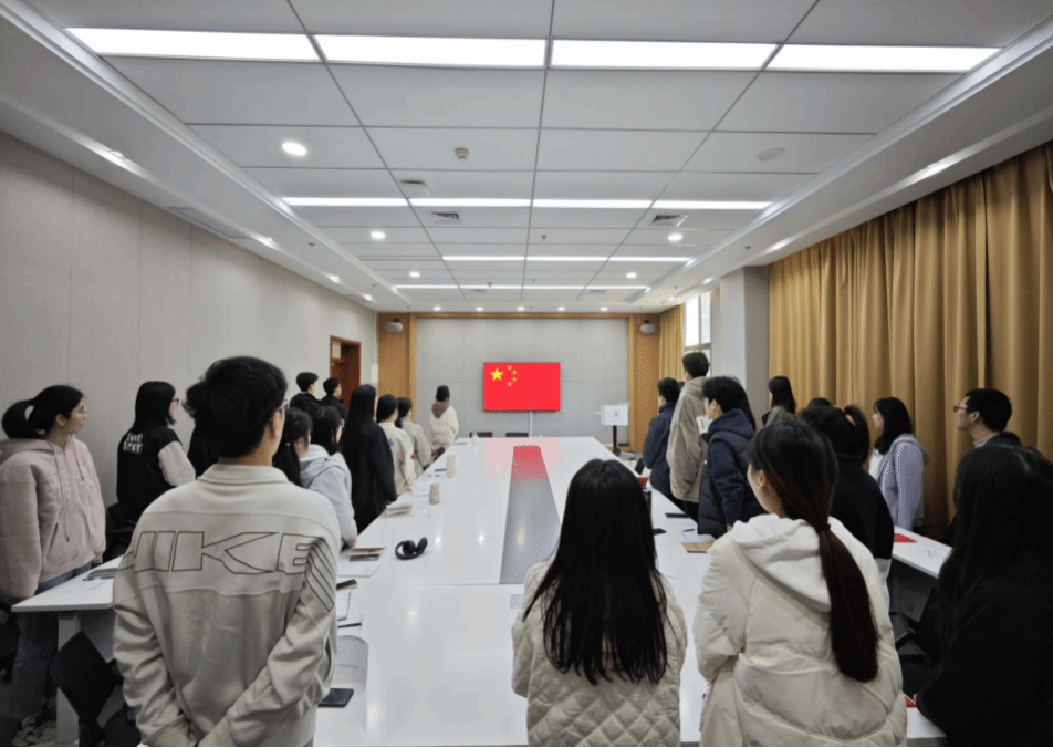 活动伊始,会议在庄严的国歌声中缓缓拉开序幕。全体与会党员整齐肃立,目光坚毅地注视着国旗,伴随着激昂的旋律齐声高唱国歌。