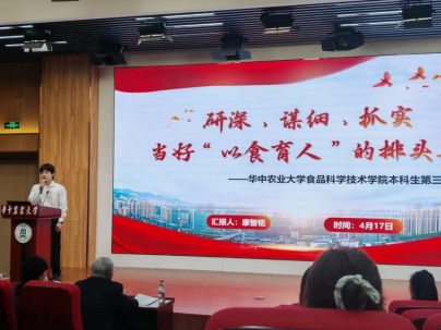 在支部建设成效汇报环节,本科生第三党支部副书记康智铭同志以研深、谋细、抓实为脉络,聚焦以食育人的创新实践,从理论学习的深度挖掘到实践行动的闭环管理,以详实的数据汇报支部全年开展的理论学习、实践调研等活动,配合党支部与学校建安部多次结对共建以及“红色导师”等生动案例,系统展示了支部在思想建设、组织建设、制度建设等方面取得的丰硕成果,充分彰显了支部创新发展的工作思路与扎实有效的建设举措。