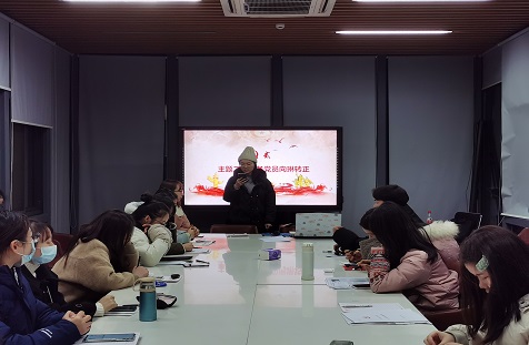 本次会议第一项是十二月主题党日活动,由党支部书记陈梦婷主持。