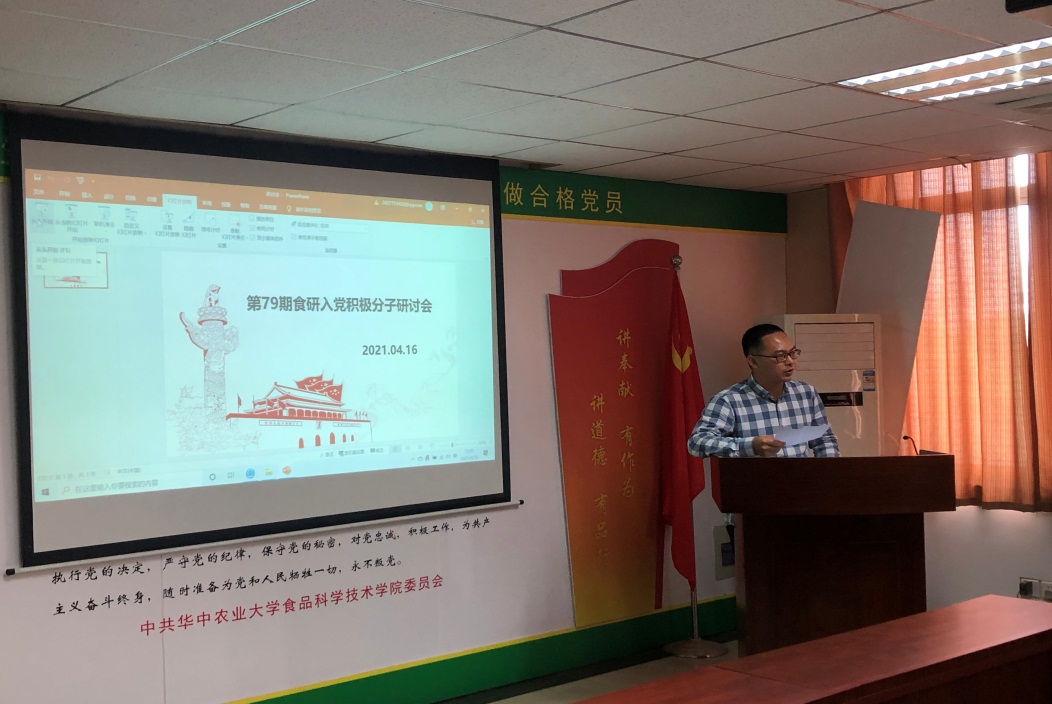第79期入党积极分子党史学习研讨会在食科楼院楼445会议室顺利举行,优秀党员代表王文乾、全体79期入党积极分子以及党建办公室主要负责人员参加此会议。本次研讨会旨在使各入党积极分子对中国共产党的建立、成长以及成熟的光辉历程有更清晰的认识,加深积极分子对党新时期的路线方针的了解。