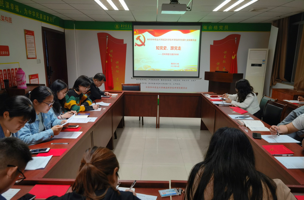 内容提要:知史爱党,知史爱国420日晚,食科院研究生第七党支部于食科楼445党员活动室召开了四月份主题党日活动。