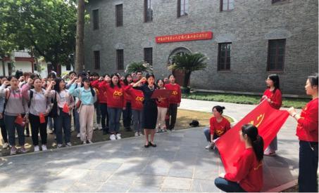 在讲解员的带领下,党员们来到了中共五大会址纪念馆前。在鲜红的党旗下,党员佩戴党徽,举起右手、握紧拳头,浙江大学生物系统工程与食品科学雷速篮球
