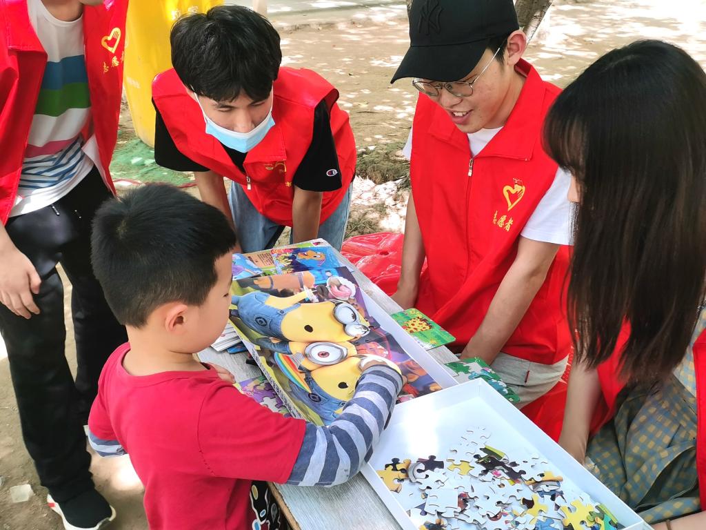 在“大手拉小手”活动中,志愿者们带领社区小朋友进行折纸、绘画、拼图等动手游戏。在欢声笑语中,年龄较小的小朋友们跟着大哥哥大姐姐们学习汉字、认知颜色、听哥哥姐姐们讲童话故事;低年级小朋友和哥哥姐姐们聊天,讲述自己的童年烦恼,向哥哥姐姐了解大学生活是怎样的。
