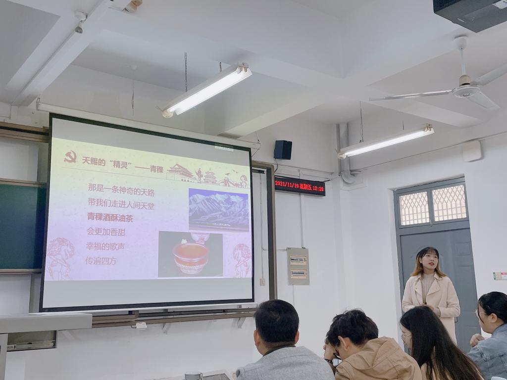 入党积极分子罗依婷以“天赐的精灵——青稞”为题分享,青稞是广袤的草原深处唯一可以正常成熟的作物,红军飞夺泸定桥后继续北上,在没有人烟的藏区割麦米煮食的故事。党员应不忘初心、牢记使命,弘扬艰苦朴素、廉洁自律的工作作风,走好新时代的长征路。