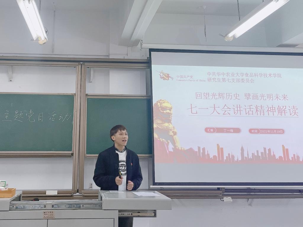 研究生第七党支部于二教304召开以“回望光辉历史 擘画光明未来”为题的主题党日活动,支部党员及入党积极分子到场参加。