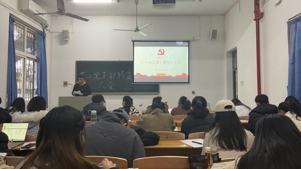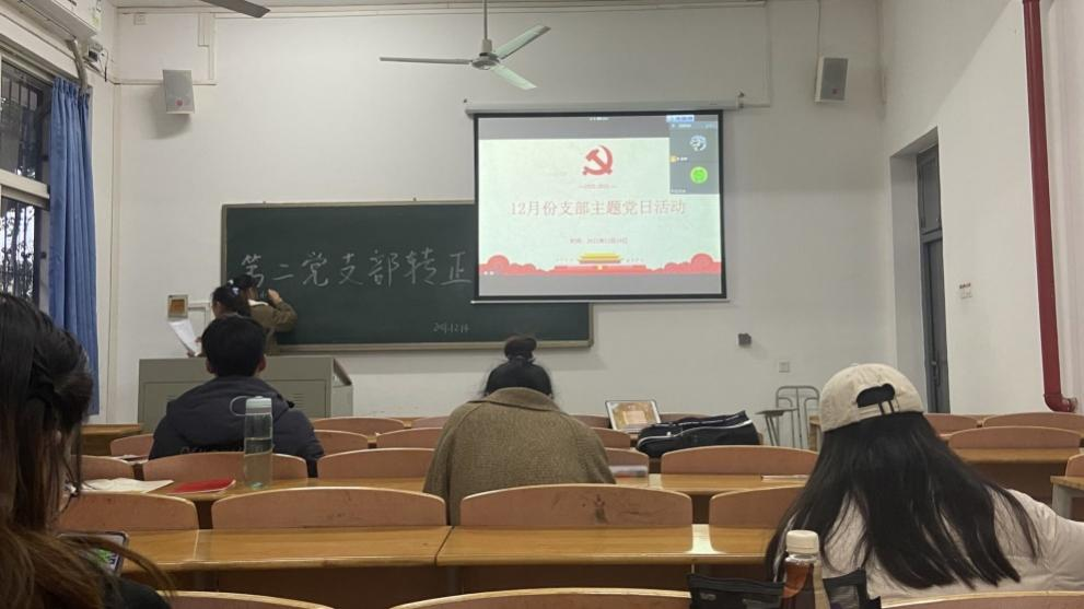 2021级研究生第二党支部于2021年12月14日18:00在一教105开展了12月份的“支部主题党日”活动暨预备党员转正大会。