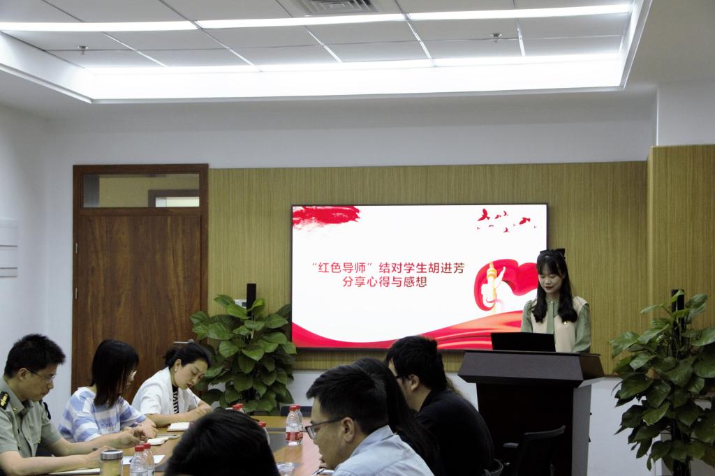 “红色导师”制度是加强党的建设,把党的主题教育落到实处的具体举措之一,能够实现教师党建与学生思政的有机融合。“红色导师”代表李寅甲老师就师生结对工作进行分享交流时表示“‘红色导师’制度贯穿高校的党建和思政工作,老师们一定要想方设法地引导学生积极听党话、跟党走,通过这种互促共建、融合共进的交流形式,促进学生健康成长和党建工作的顺利举行。”李寅甲老师的学生胡进芳认为“红色导师”制度有利于促进优良师风与浓醇学风,融通师生思政和党史学习教育,是非常值得在各高校中弘扬的工作制度。