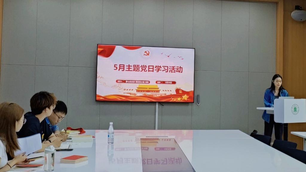 研究生第七党支部于工科楼122会议室召开五月主题党日活动,会议由支部书记丁一峰同志主持。