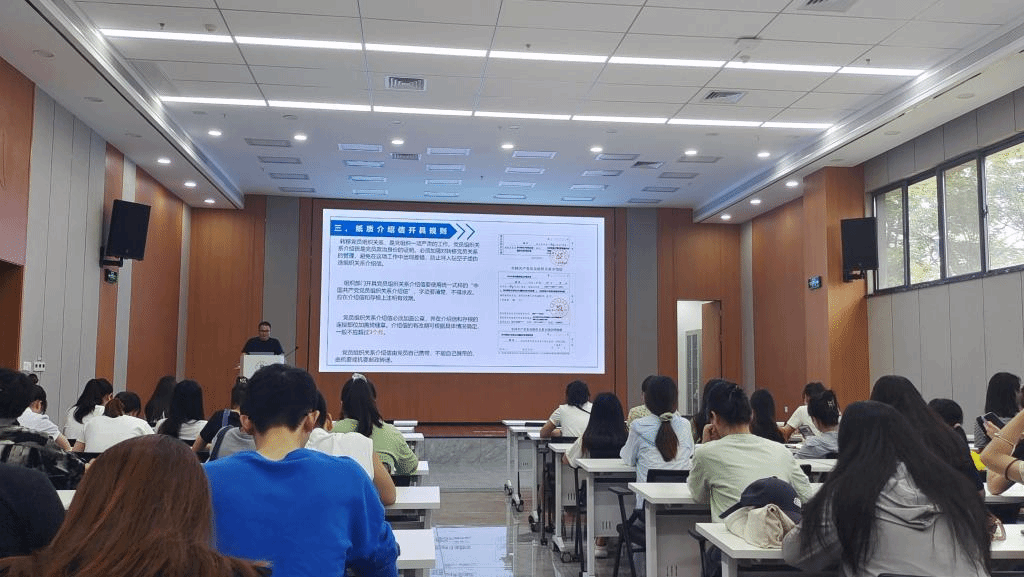之后,刘涵斐详细讲解了党员组织关系介绍信的开具规则,重点强调了介绍信上的时间规定、不同接收党组织情况及介绍信补办要求。
