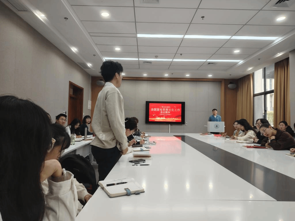 文明生生不息,思想与时俱进。张婷同志结合党的十八大以来系列讲话和党的十九大以来六大思想,就深入学习贯彻习近平总书记重要指示和全国宣传思想文化工作会议精神具体如何实施展开深入分析:以语言为载体的青年,是宣传思想文化工作的一环,肩负着爱党、护国、弘扬民族精神的初心使命。唯有对党、对国家、对民族保有最深切真挚的情感,笔下的文字才能焕发出最蓬勃的生机与力量。而这生机与力量,也必将助力国家繁荣富强、民族伟大复兴。