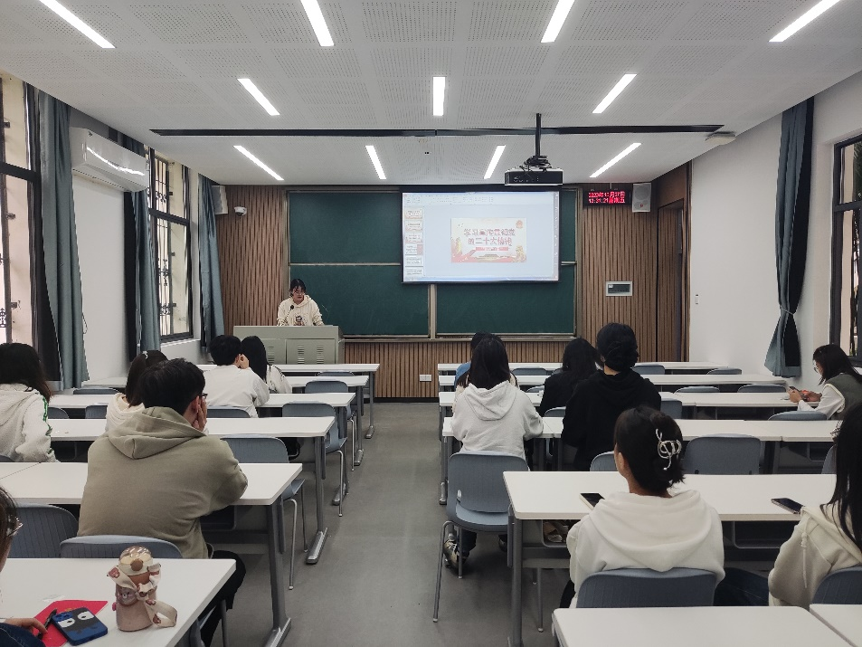 研究生第十一党支部全体党员在第一教学楼107教室开展十月主题党日活动。本次活动由党支部书记秦平主持。