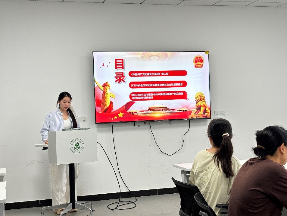 研究生第十一党支部在工科楼505会议室开展6月主题党日活动,活动由党支部副书记周玥全主持。会上全体党员集中学习了《中国共产党纪律处分条例》(以下简称“《条例》”)第二编,中央全面深化改革委员会第五次会议重要指示以及习近平总书记在中共中央政治局第十四次集体学习时的重要讲话精神。