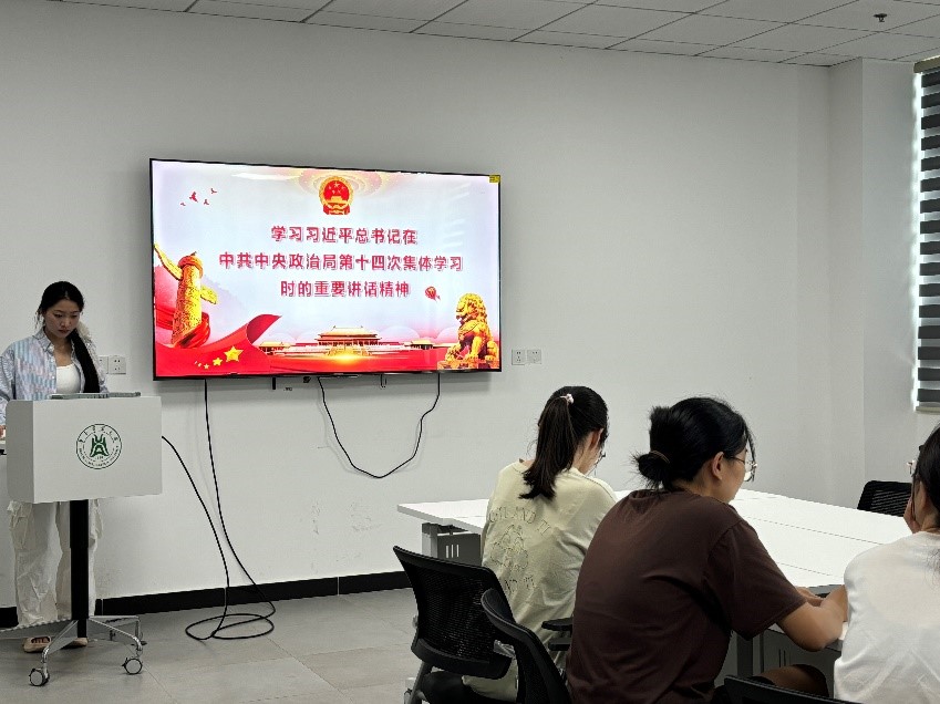 而后,党员们共同学习习近平总书记在中共中央政治局第十四次集体学习时的重要讲话精神。周玥全表示,中央政治局就促进高质量充分就业进行集体学习,充分体现了以习近平同志为核心的党中央对就业工作的高度重视,是就业事业发展中具有里程碑意义的大事,也是与我们青年党员密切相关的大事。习近平总书记的讲话深刻总结了新时代就业工作的规律和经验,深入阐述了促进高质量充分就业的实践路径和工作要求,系统回答了事关就业的一系列方向性、根本性和全局性问题,为促进高质量充分就业提供了根本遵循和行动指南,注入了强劲动力和坚定信心。卢平在学习后发表了自己的见解:“作为新时代青年,我们应走好新时代的就业发展之路,要努力践行尝试自主就业和配合市场调节就业的方针。”
