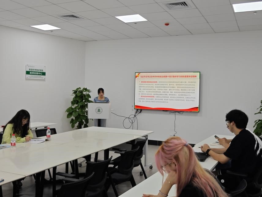 最后,袁梦缘主持并领学本月组织生活会,深入介绍了《条例》第十一章《对违反生活纪律行为的处分》的相关内容。同时,她还向大家分享了一篇题为《习近平在中共中央政治局第十四次集体学习时强调 促进高质量充分就业 不断增强广大劳动者的获得感幸福感安全感》的文章。