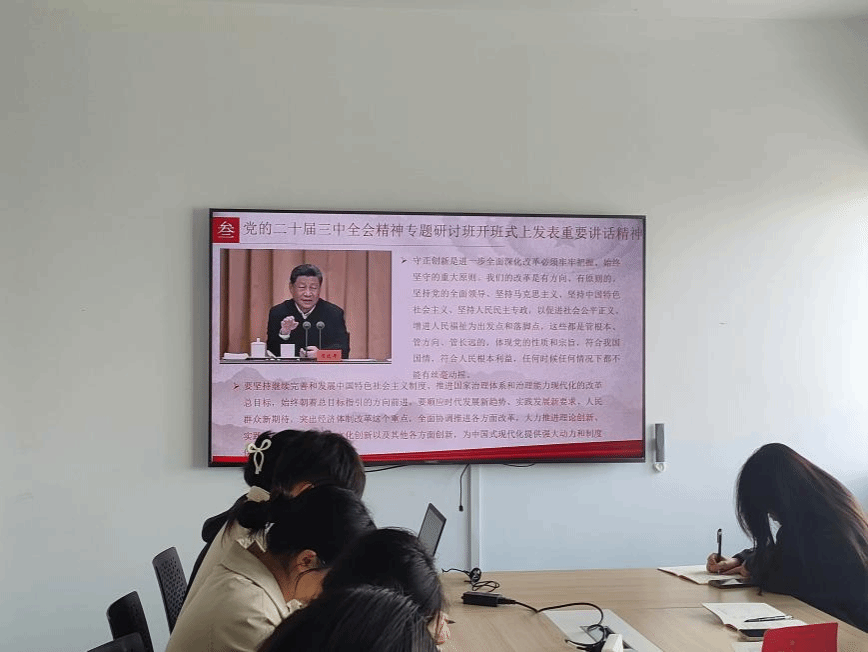 随后,董婕同志带领大家学习习近平总书记在省部级主要领导干部学习贯彻党的二十届三中全会精神专题研讨班开班式上发表的重要讲话精神。通过董婕同志的讲解,支部成员深刻领悟了“两个确立”的决定性意义,要坚决做到“两个维护”,把思想和行动统一到习近平总书记重要讲话精神和党中央决策部署上来,积极投身全面深化改革的伟大实践。
