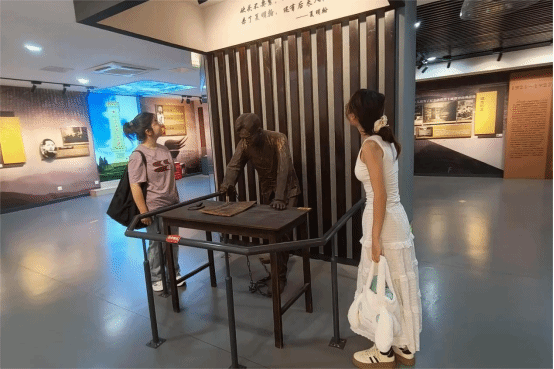 纪念馆内,还展出众多艺术作品。展现革命场景的油画,以艺术笔触重现宜昌保卫战等壮烈画面;还有烈士雕像凝固着英勇无畏瞬间,让参观者读懂先辈的热血担当。驻足于夏明翰雕像前,队员们望着展墙上“砍头不要紧,只要主义真。杀了夏明翰,还有后来人。”的名言,仿佛看见屠刀下革命烈士夏明翰昂首而立的场景,铿锵字句间的无畏气节,让在场众人深受震撼。