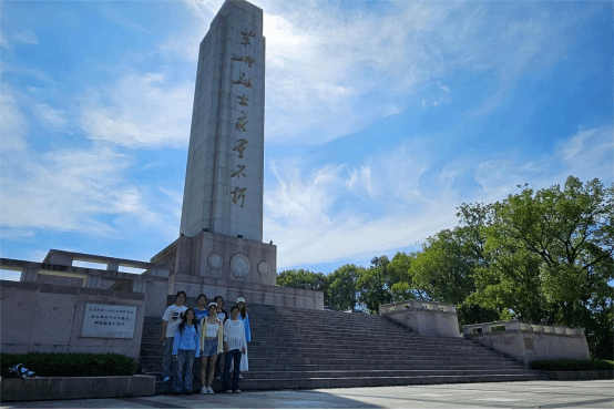 队员们参观了宜昌烈士陵园的宜昌革命烈士纪念碑和宜昌烈士纪念馆。拾级而上,实践团首先瞻仰宜昌革命烈士纪念碑。巍峨碑身矗立东山,“革命烈士永垂不朽” 八个鎏金大字熠熠生辉,仿佛在诉说着往昔峥嵘岁月。它见证着宜昌革命岁月,承载烈士们的热血与牺牲。实践团怀着崇敬的心情,庄重肃穆而立,表达着对先烈的敬意。