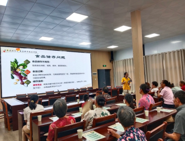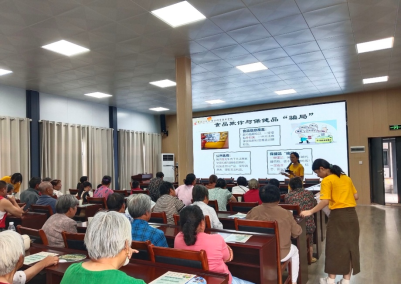 宣讲环节中,团队讲师刘祎恒结合《中国居民膳食指南》和《“健康中国2030”规划纲要》,针对夏季高温环境下中老年人常见的食欲不振、营养流失等问题进行科学分析,并给出合理建议,强调“夏季饮食要注重补水,适量增加富含钾、维生素C的食物,如香蕉、绿叶蔬菜等”。还在讲解中特别提醒居民注意食品安全,避免保健品消费陷阱,增强科学饮食意识。