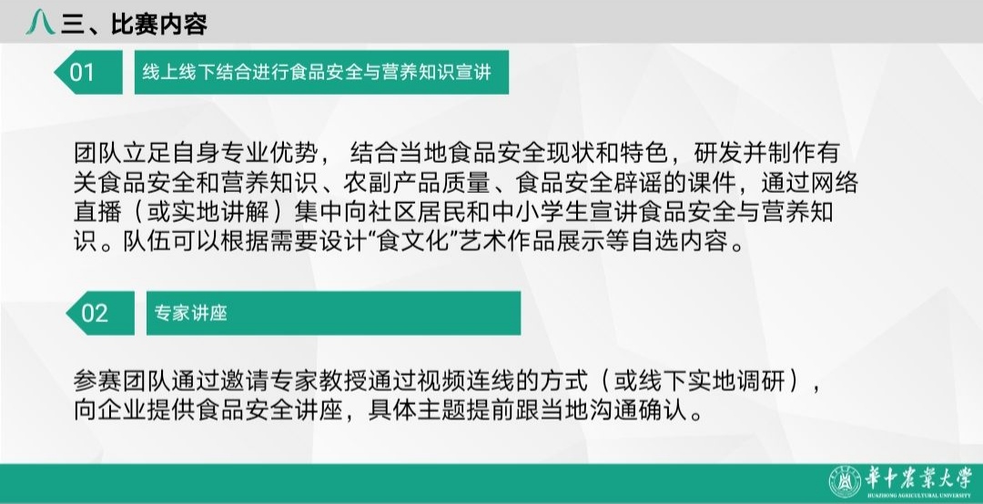 会议伊始,主持人姜佳蔚介绍了“食品安全与营养湖北行”大学生志愿服务活动的具体内容,详细讲解了“食•趣”夏令营、“食•检”体验行、“食•研”营养调查等六个专题活动的开展形式和实践模式。