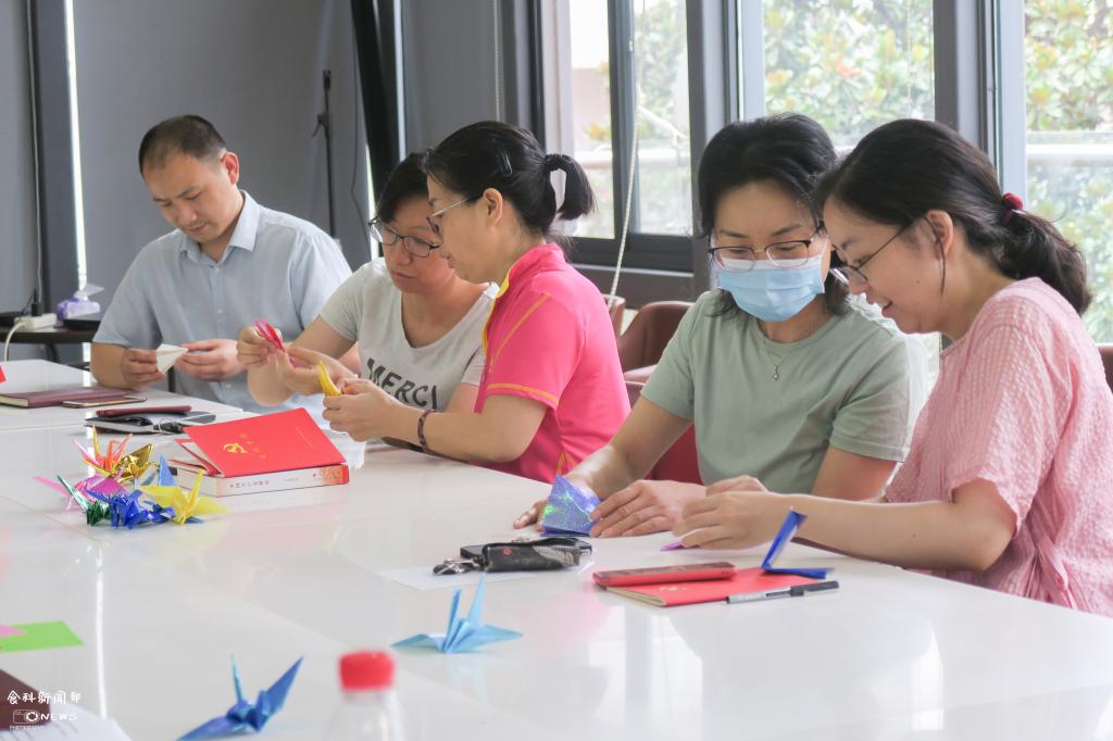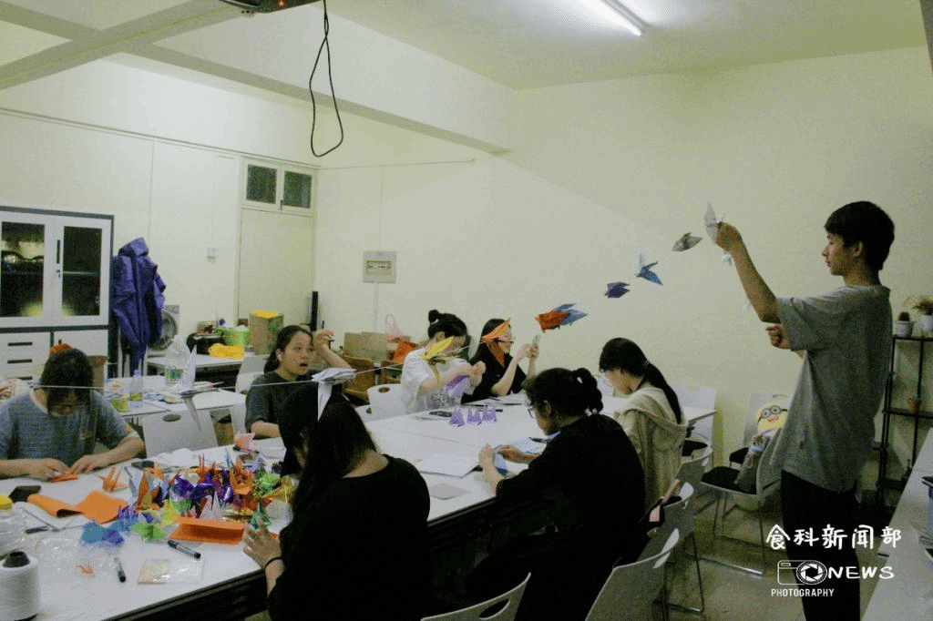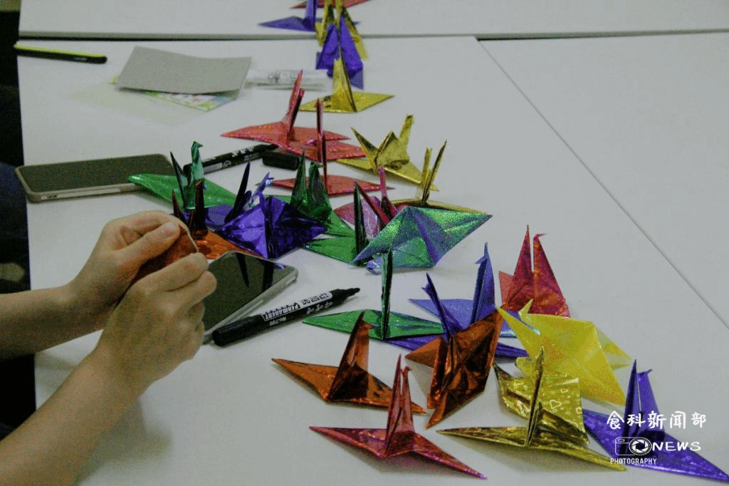 “青年志愿者协会”与“食科一家人”基金会共同举办的“变纸为鹤,只只纸鹤含深情”的折纸送祝福活动在食科党员活动室开展。