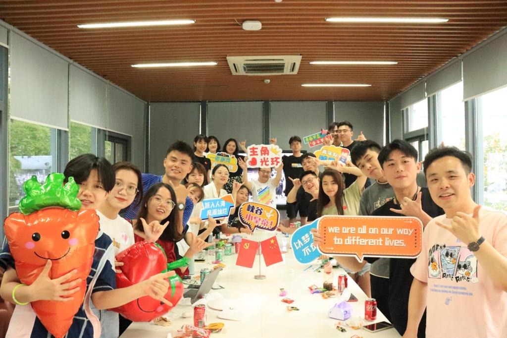 由气球点缀而成的回忆墙旁,有同学举着“主角光环”的牌子,此刻的笑容随着快门的“咔擦”声被永远定格在了胶片上。长廊的左边,幸运转盘处抽中奖品的同学正在欢呼雀跃。