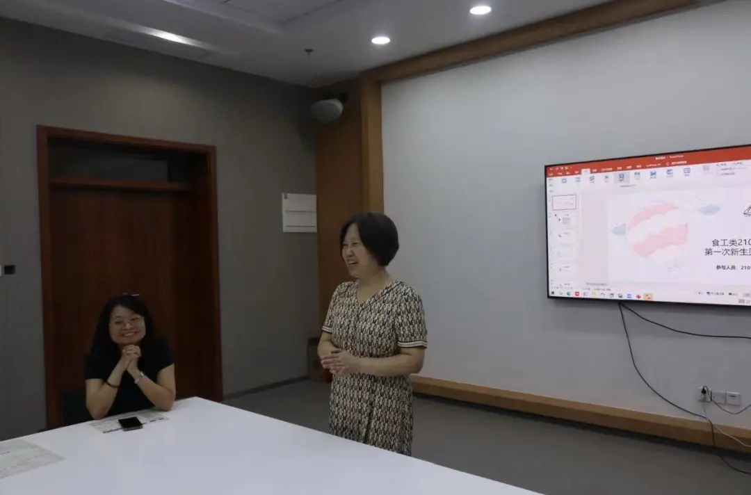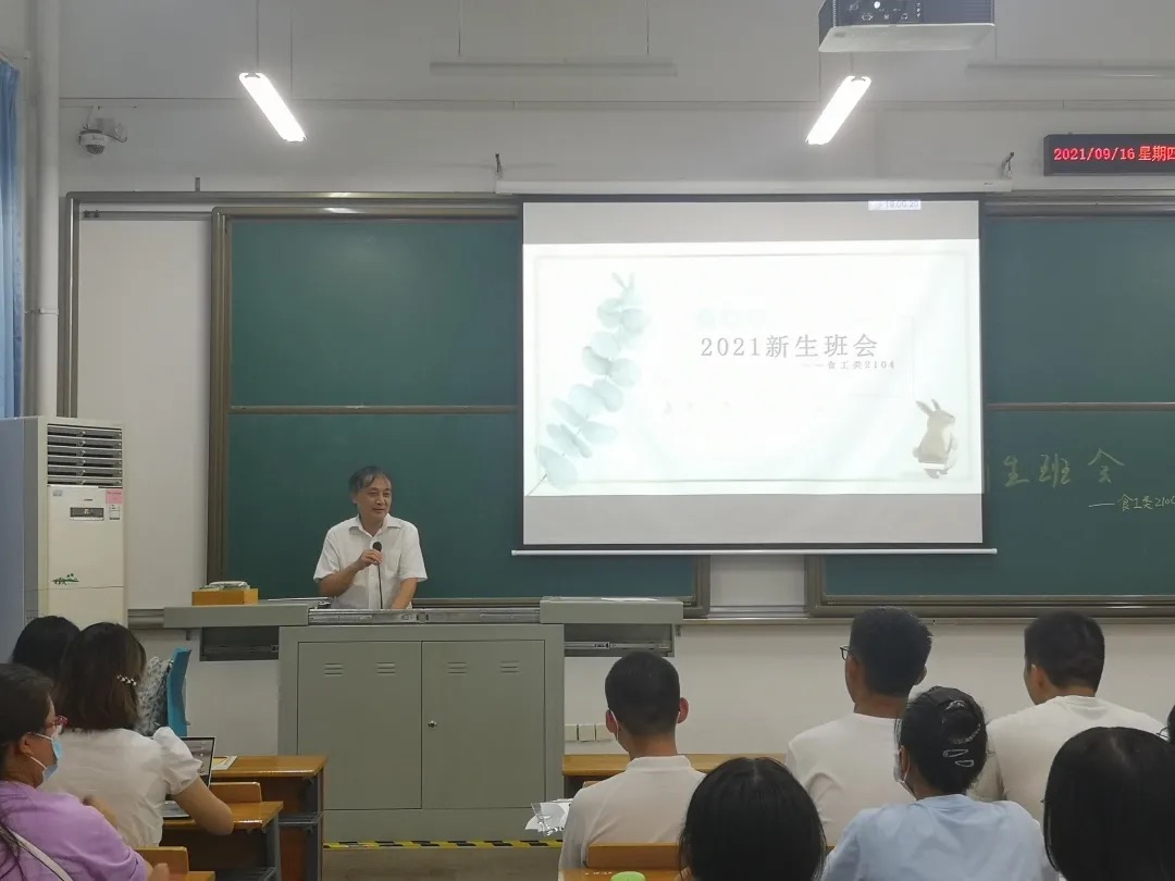 在同学们的自我介绍环节结束后,班主任盛龙进行总结发言。他表示,大学生活与高中生活有很大差别,大学要靠同学们自主学习,不能过于松懈,掉以轻心,要重视学习、学会高效率地学习,同时也要踊跃参加活动,学会为人处事的方式。他还提到,希望大家能够处理好同学、室友之间的关系,共同打造一个团结、有凝聚力的班集体。与此同时,食工类2106班的新生班会也在工科大楼225会议室举行,院长徐晓云、黄茜老师、班主任刘超、辅导员李虎共同参与。