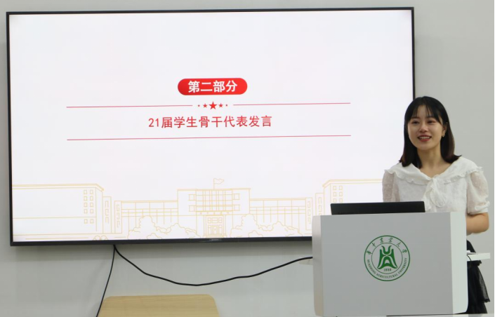 首先,由2020级学生骨干汇报过去一年党建办、团工委以及研究生会工作的完成情况。大家从学生工作的初心、学年工作内容、重要工作创新、未来工作展望等多个方面展示了研会和党建工作。围绕如何更好的为老师和学生服务这一核心宗旨,探讨了各自工作模块中的使命和责任。其中,“你的回合”APP、“食品安全与营养中国行”、“学术晚茶”等充满食科院特色的活动广受好评。“20级学生骨干的工作圆满完成,希望下一届的师弟师妹们可以让食科院越来越好,做好同学需要的事情,做让同学满意的事情。”