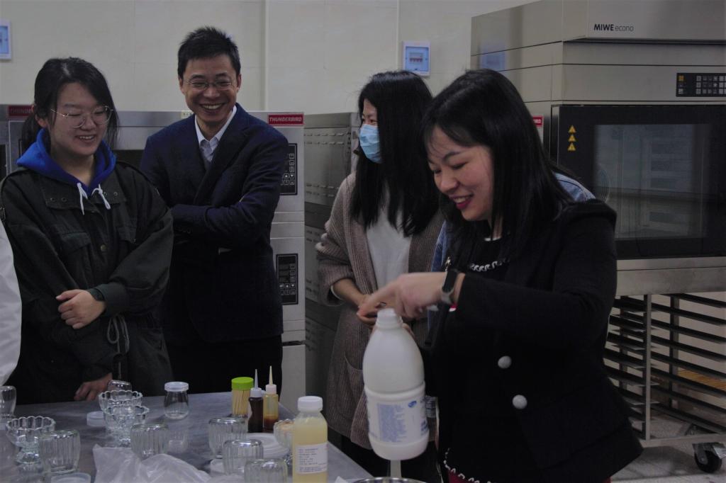 在院楼烘焙坊为第四届”微康益生菌杯”酸奶DIY大赛通过初筛的十支队伍开展产品制作培训会,此次培训邀请到湖北省市场监督管理局主任樊焱、湖北省人才服务中心李婧老师为大家现场授课。