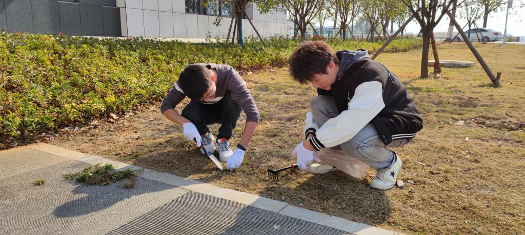 本科生第二党支部携手“食科一家人”志愿服务队开展环境卫生清理整治的志愿活动,对工科大楼周边的杂草进行清除。