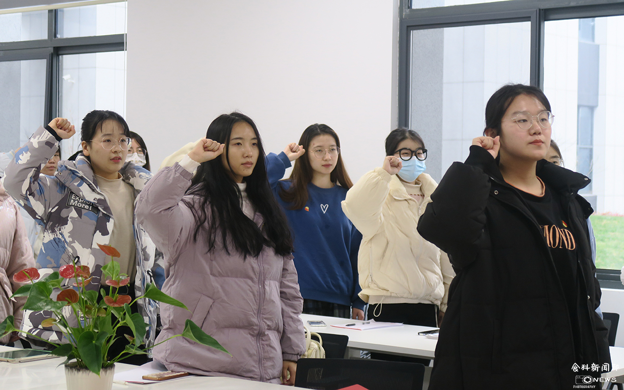 会议伊始,李虎向各参会人员介绍会议主题及目的。他表示,本次会议以“学习十九届六中全会精神”为主题,旨在加深全体党员对《中共中央关于党的百年奋斗重大成就和历史经验的决议》中“两个确立”“十个坚持”“五大历史意义”等重大概念的理解。他强调,全体党员要从《决议》中通读懂百年来中国共产党践行为中国人民谋幸福、为中华民族谋复兴的初心使命所进行的奋斗、牺牲和创造,体味“过去我们为什么能够成功、未来我们怎样才能继续成功”。随后,全体新发展党员面对党旗进行入党宣誓。