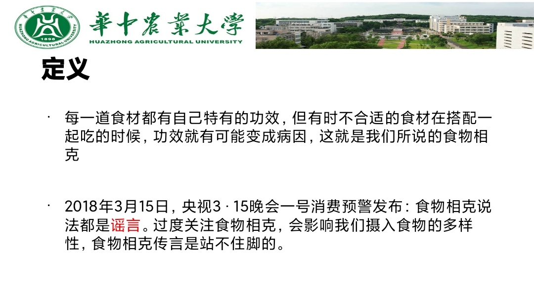青年志愿服务中心于3月4日晚开展以“食物相生相克真的存在吗?”为题的线上会议,会议由食工2001班刘钰洁主讲,面向金鹤园社区居民,宣传食品安全相关知识。