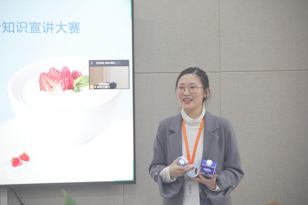 在食品安全与营养中国行知识宣讲大赛的会场里,19支队依次上台讲解,就酸奶的种类功效及挑选方法、疫情时代的食品保存方法、代糖的奥秘等多种日常食品的营养与安全知识进行科普。同学们在保证语言通俗易懂的同时,不断提升准确性与科学性,以期待在社会实践中提升食品安全科普宣讲水平,用专业知识助力健康中国战略。