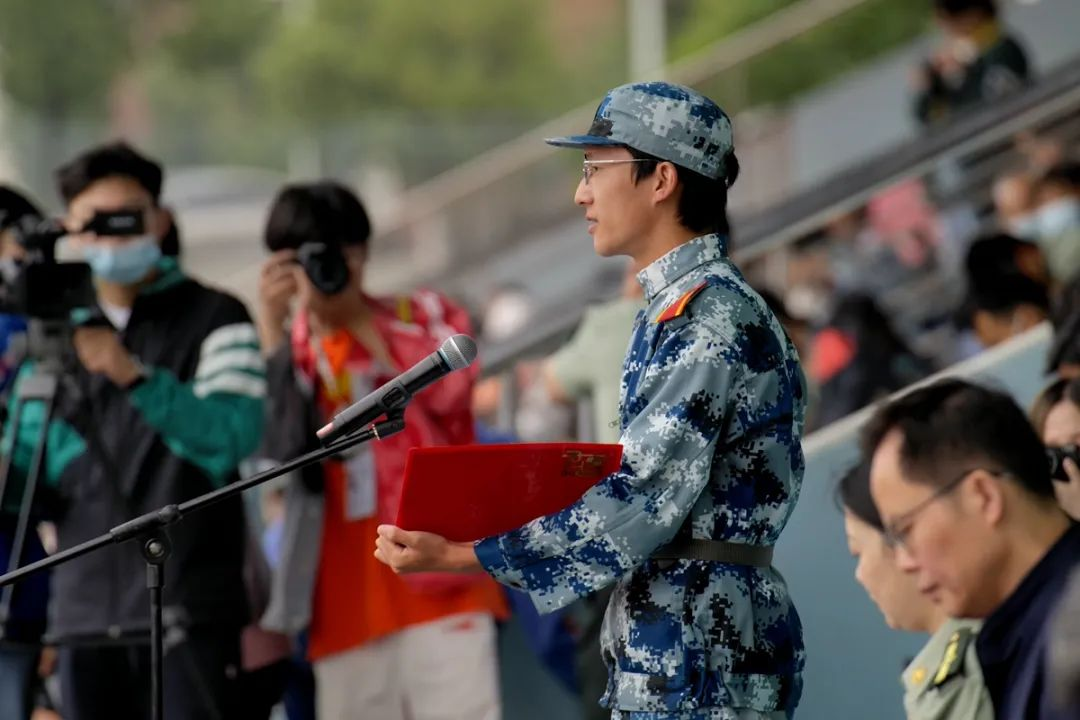机械2101班张驰在发言中谈到,在未来的学习生活中,将保持军训中养成的好习惯、好作风,以坚韧不拔的意志品质“勤读”,以牢不可破的集体意识“力耕”,以追求卓越的人生信念“立己”,以团结互助的无私精神“达人”,努力成长为有理想、敢担当、能吃苦、肯奋斗的新时代好青年。