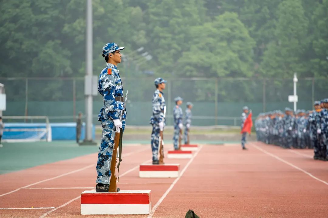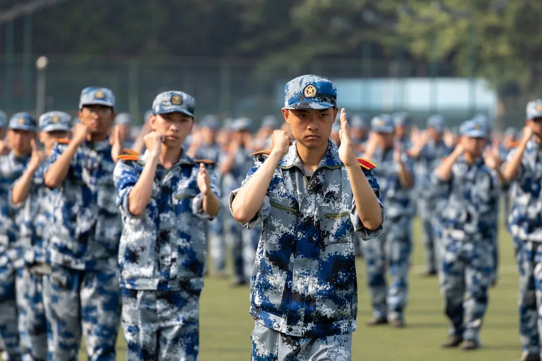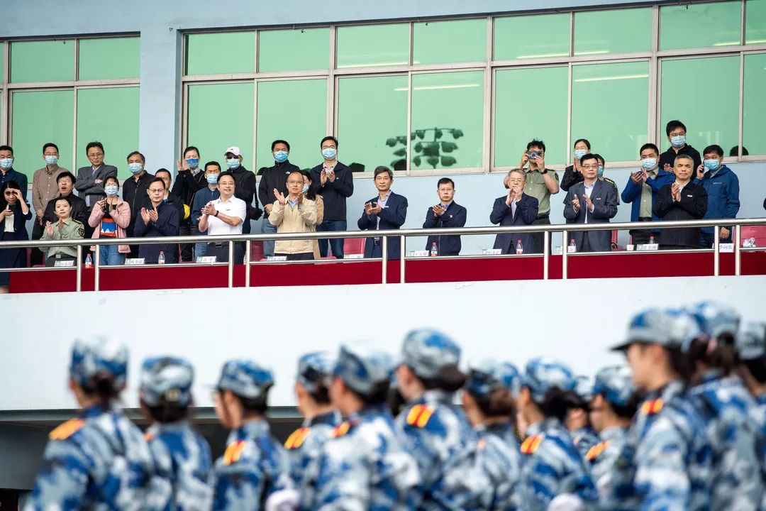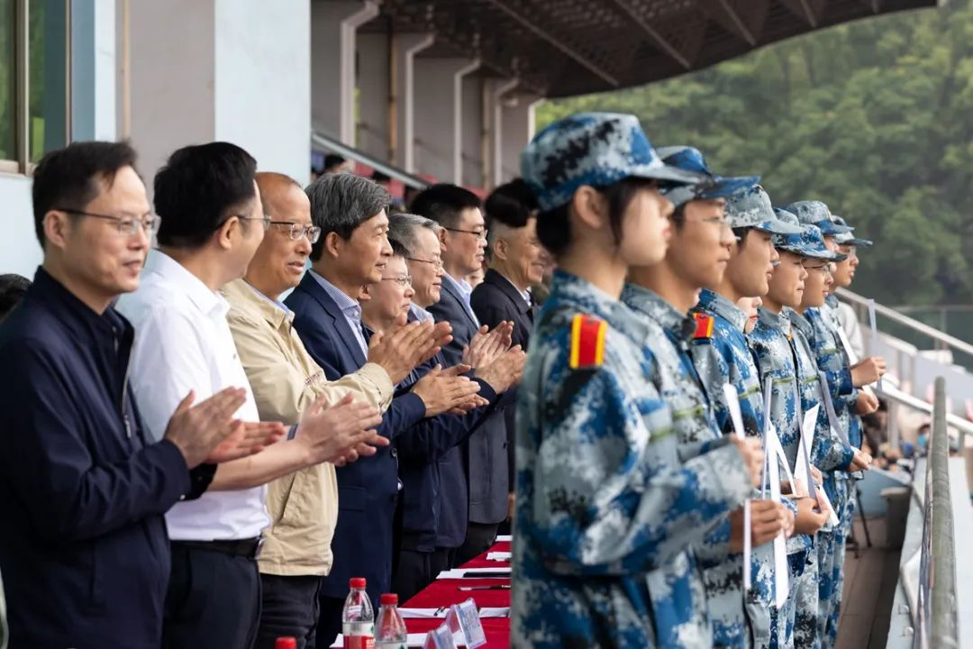 2021级本科生军训结业式在嘹亮的《中国人民解放军军歌》中结束。