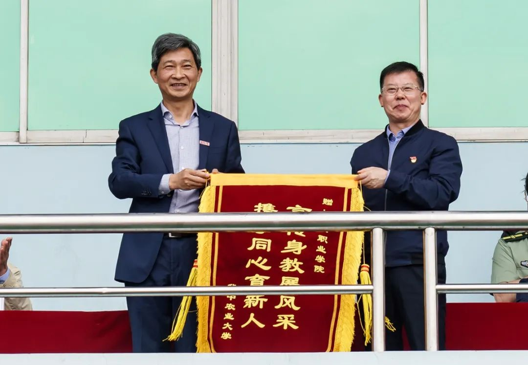“言传身教展风采,携手同心育新人”,结业式上,校党委书记高翅向承训单位、武昌职业雷速篮球