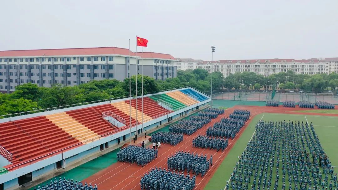 同学们队列整齐、目光坚毅、动作连贯、声音嘹亮、精神饱满,展现了青春风采。