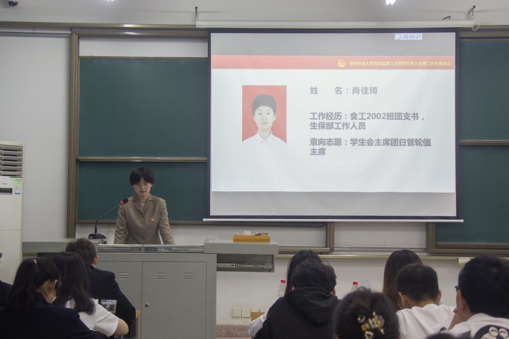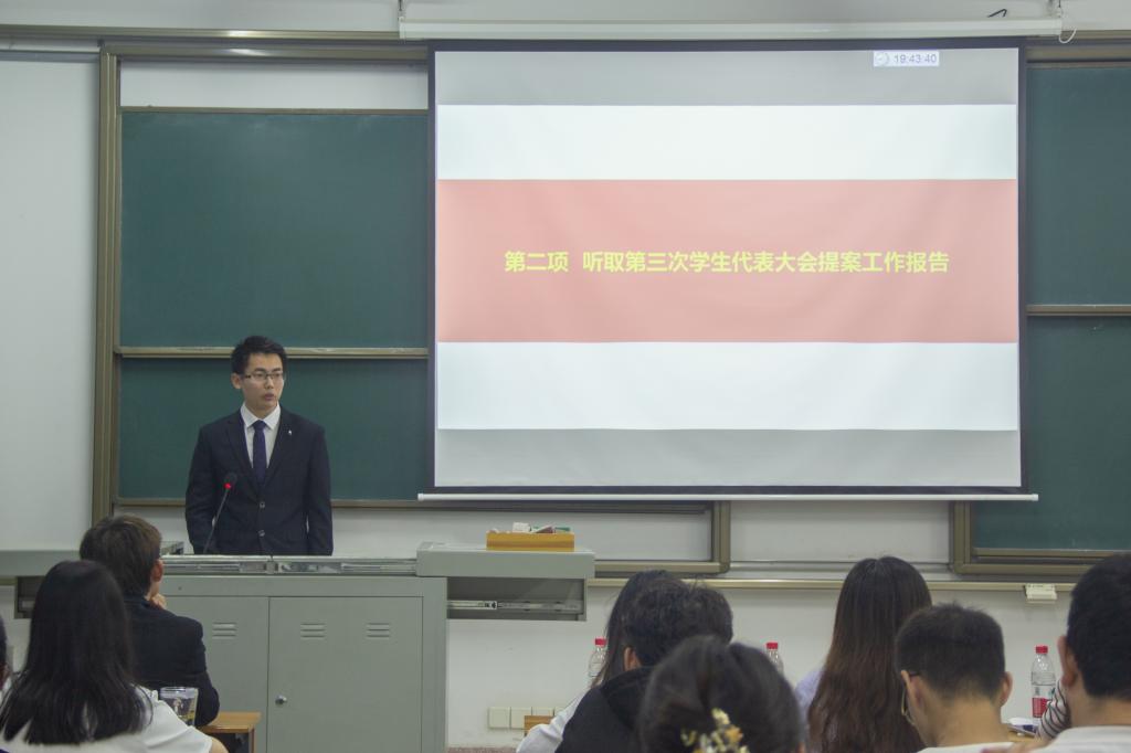 第三十六届学生会工作报告》,轮值主席吉泽阳作《第三次学生代表大会提案工作报告》。随后,全体代表表决通过《第三十七届学生会主席团选举办法(草案)》及《第三十七届学生会主席团候选人建议名单》。