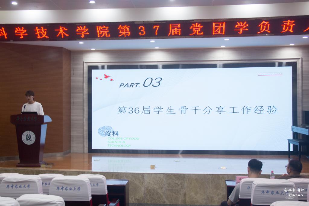 冯方军代表第三十六届党团学学生干部为大家分享工作经验。他讲到,无论做什么事,都应从小事做起,把小事做细做全。他指出,身为学生工作的领头羊,应肩负责任与使命,希望新负责人们在工作中不断探索,倡议大家积极行动,振奋精神,勇往直前,在新的征程中创造更好的成绩。